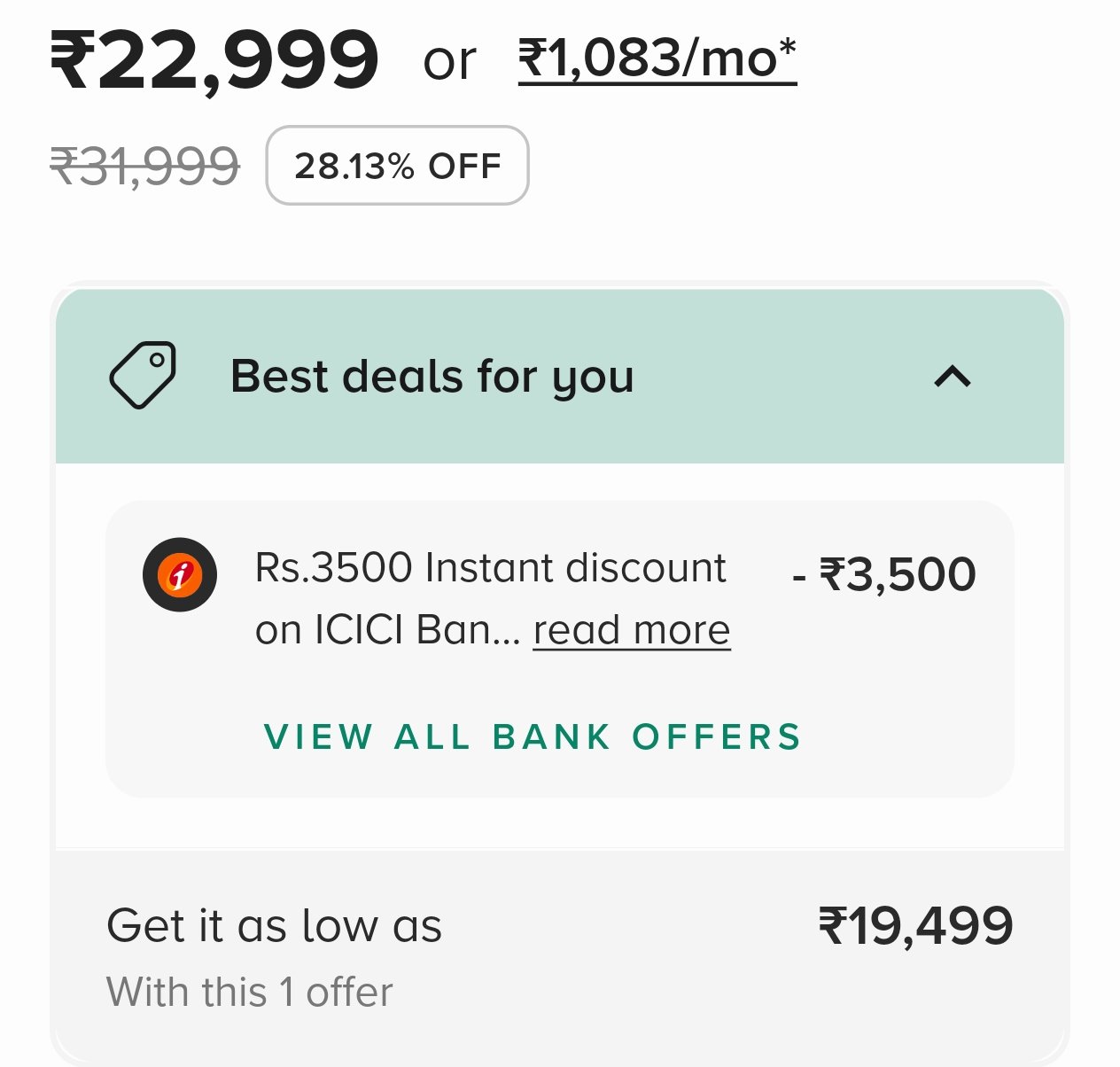 - ICICI Bank Credit Card Offer: Get ₹3500 instant discount on purchases above ₹10000. Apply at checkout.