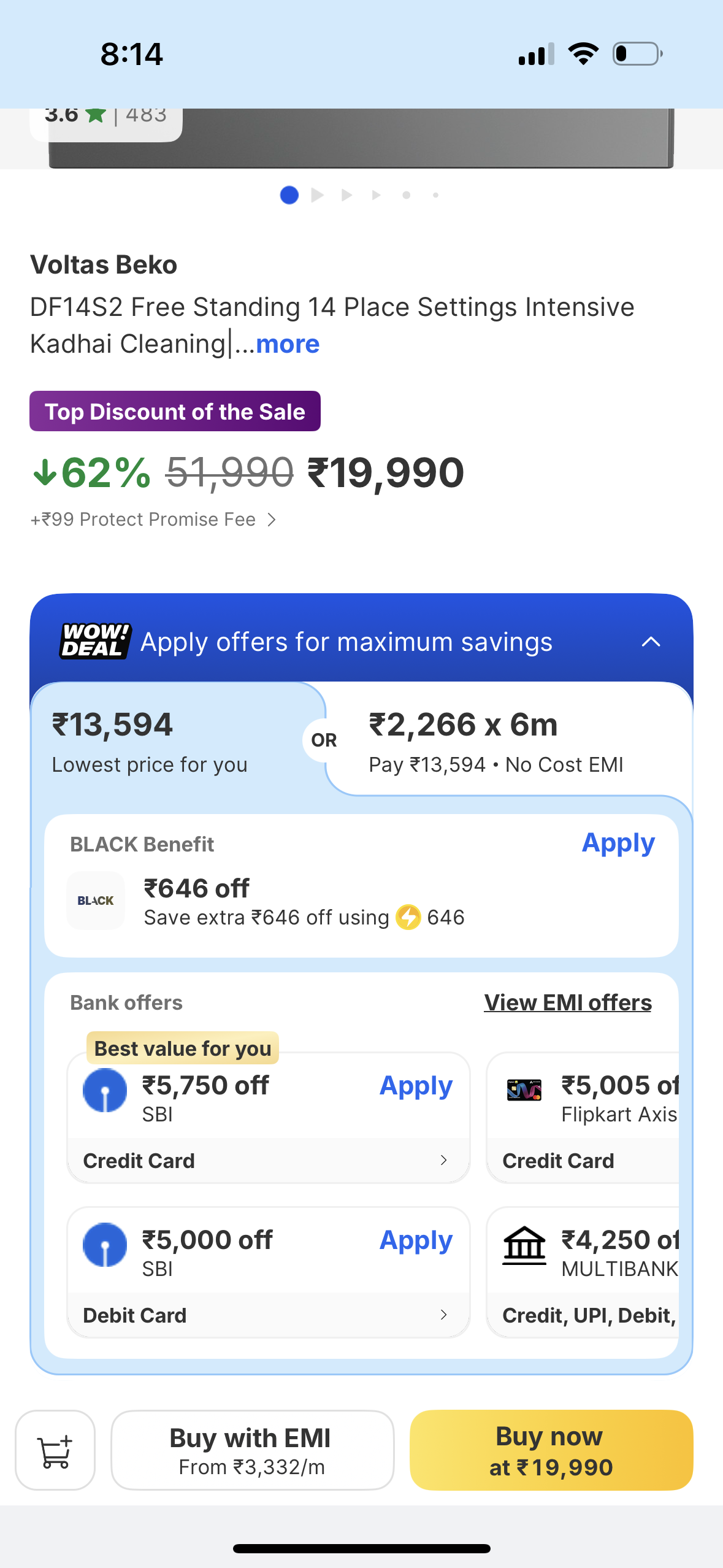 Upgrade your kitchen with the Voltas Beko DF14S2 Free Standing 14 Place Dishwasher, now available at a massive discount on Flipkart!