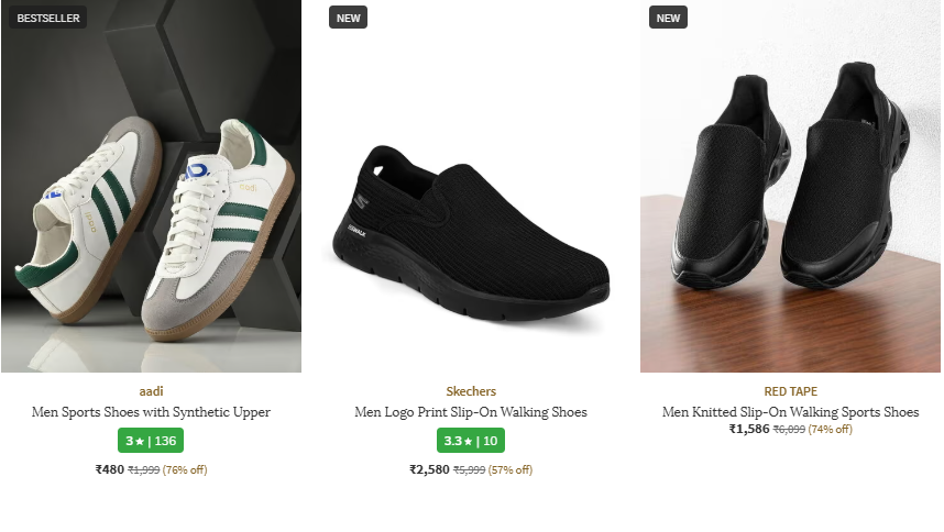 Grab incredible savings on men's sports shoes! Get up to 77% off on leading brands like Red Tape, Asics, Campus, and Skechers at Ajio. Prices start from just ₹1150. Don't miss out on these fantastic deals to upgrade your footwear collection.