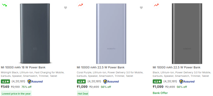 Get incredible savings on Mi Power Banks! Flipkart is offering up to 75% off on a wide range of Mi Power Banks, with prices starting from just ₹549. Power up your devices with reliable Mi technology at an unbeatable price.