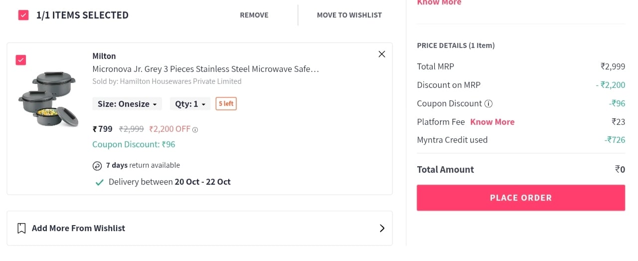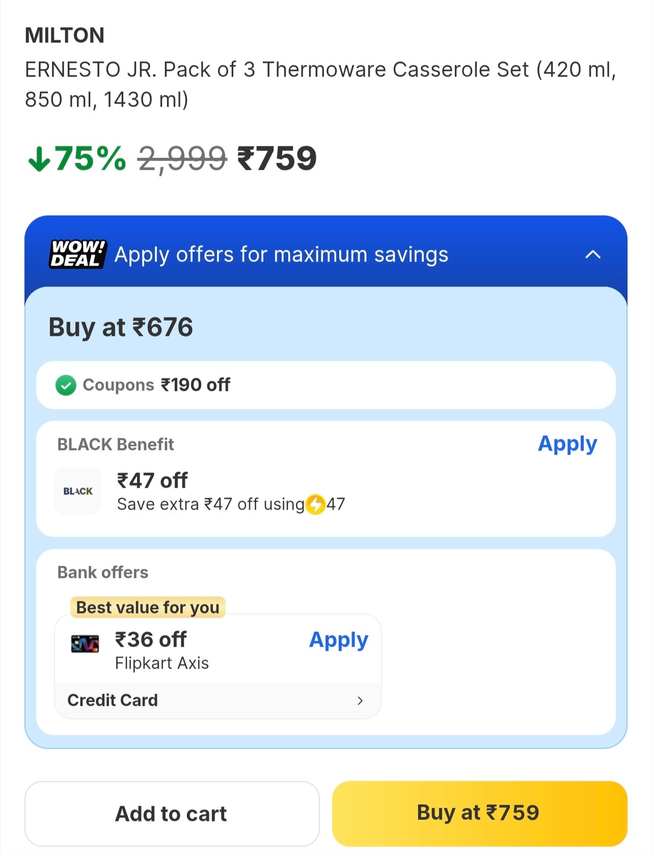- Myntra: Also ₹759 with coupon HOMEFLAT (20%) – no SuperCoins needed for discount.