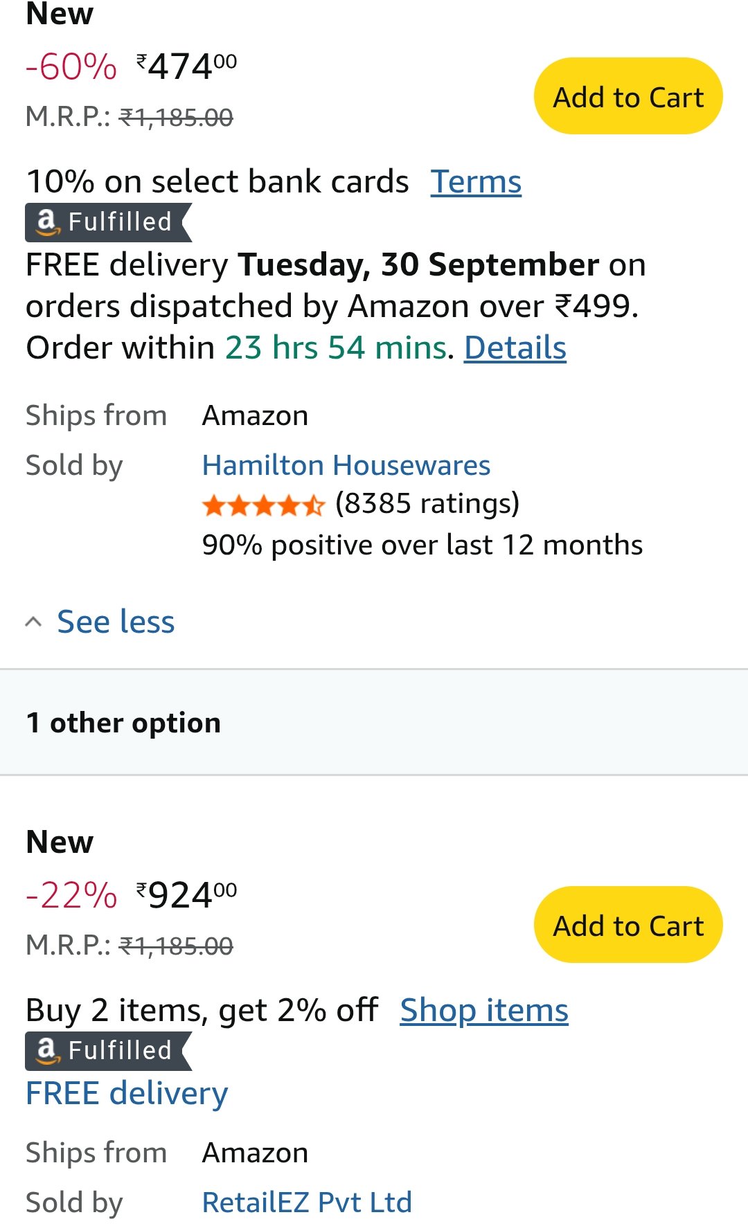 Grab the Milton Stylish 500ml Stainless Steel Water Bottle at an incredible 60% discount! Originally priced at ₹1185, get it now for just ₹474.