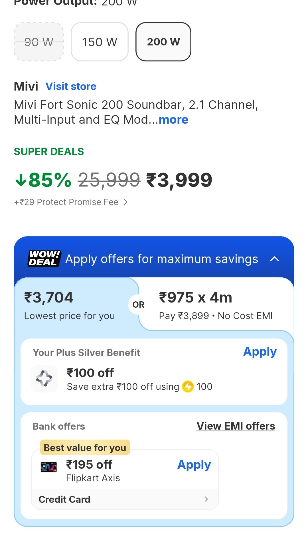 Grab the Mivi Fort Sonic 200W 2.1 Channel Bluetooth Soundbar at a massive 86% discount! Elevate your audio experience with powerful 200W output, 2.1 channel sound, multi-input options, and versatile EQ modes.