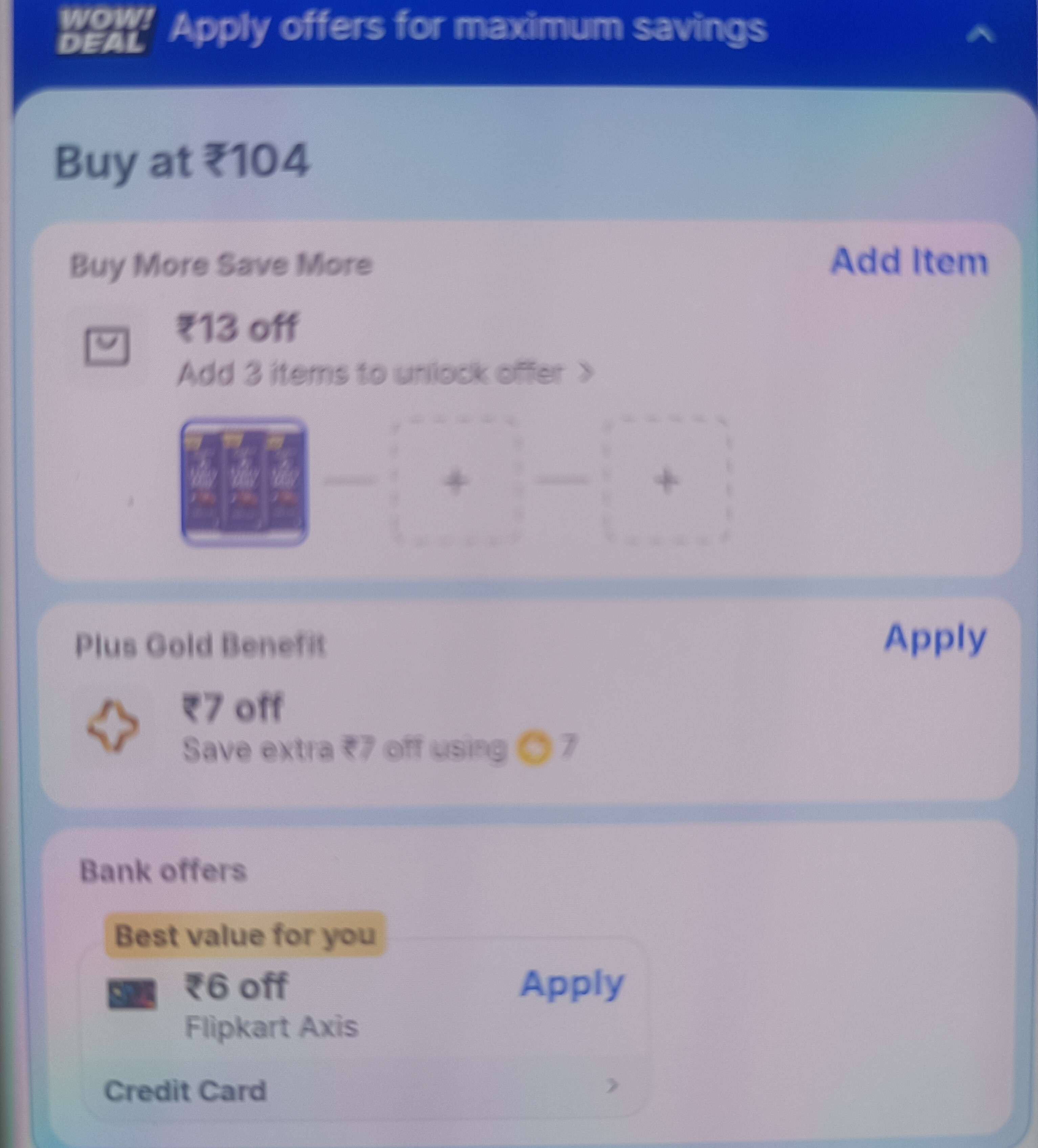 While individual pieces are priced at ₹130, this special offer allows you to purchase 3 units for just ₹104. The Minimum Order Quantity (MOQ) is 2, but adding 3 quantities to your cart might provide an additional ₹13 discount. For extra savings, consider using Flipkart Axis Credit Card discounts and Supercoins.