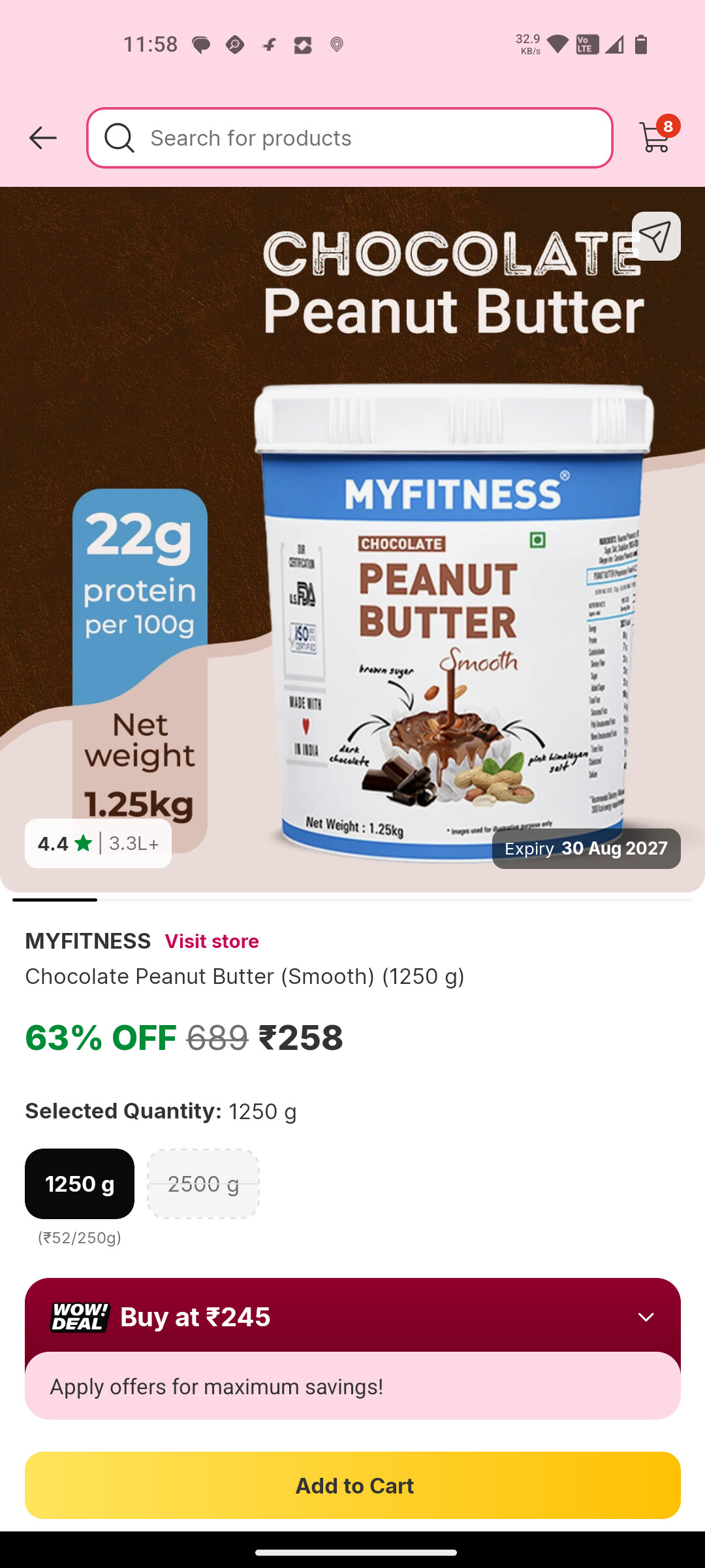 Grab an amazing deal on MyFitness Chocolate Smooth Peanut Butter! Get a massive 63% discount on Flipkart.