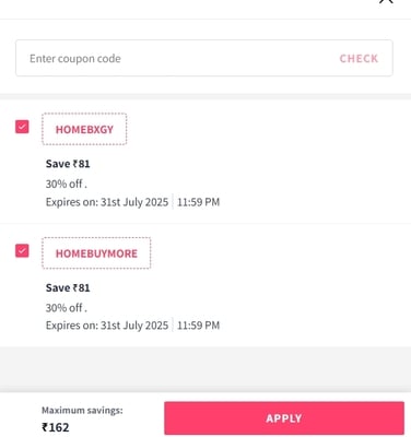 - Proceed to checkout and in the coupon section, apply these two coupons: