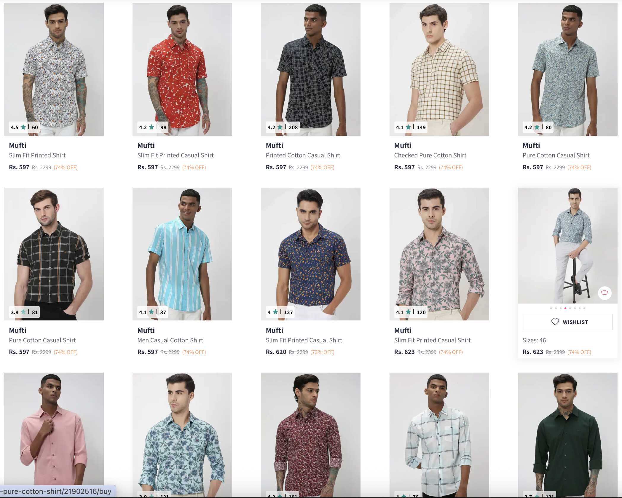 Elevate your style with incredible savings on Mufti clothing at Myntra! Shop a wide selection of Mufti shirts, t-shirts, jeans, and more with discounts of up to 74% off.