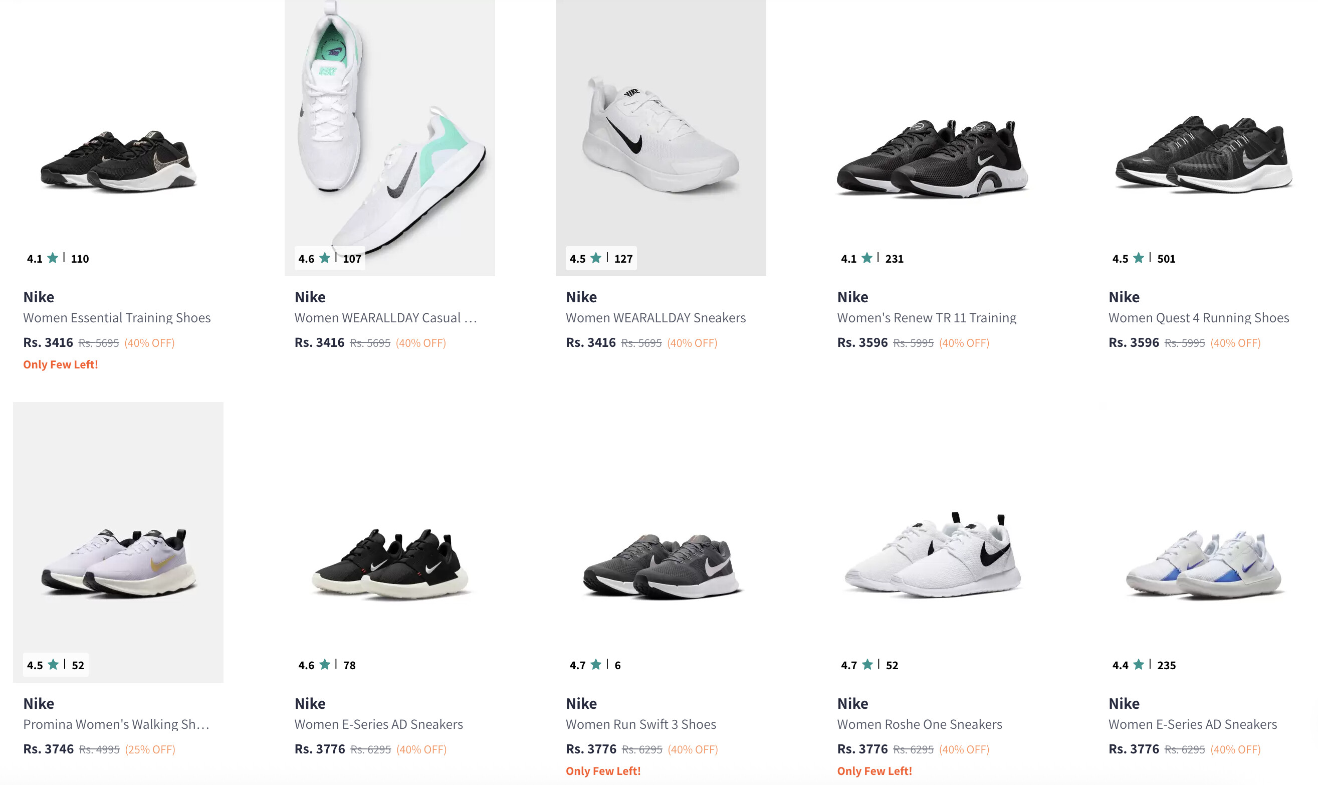 - Add two or more Nike shoes to your cart to automatically apply the extra 30% discount.