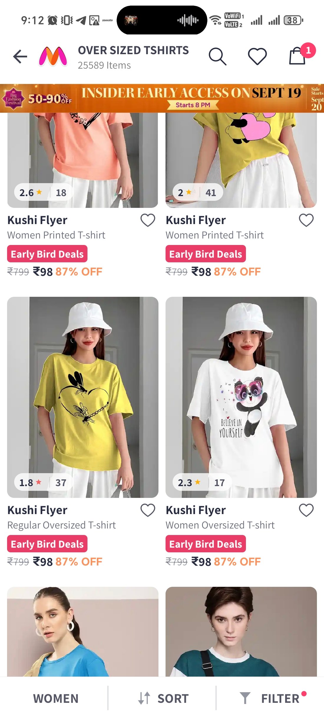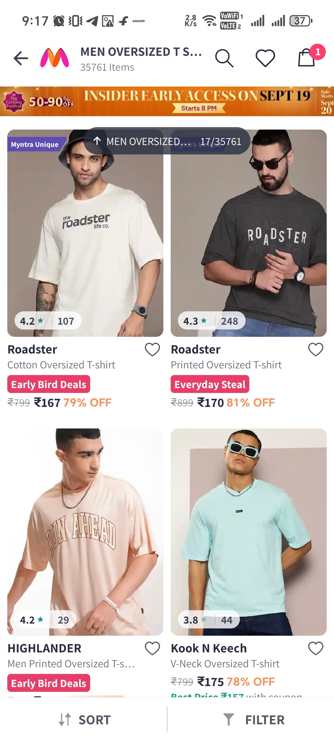 Discover trendy oversized T-shirts for both men and women on Myntra, with prices starting at just ₹98! Enjoy fantastic savings of up to 88% off on a wide selection of comfortable and stylish tees.