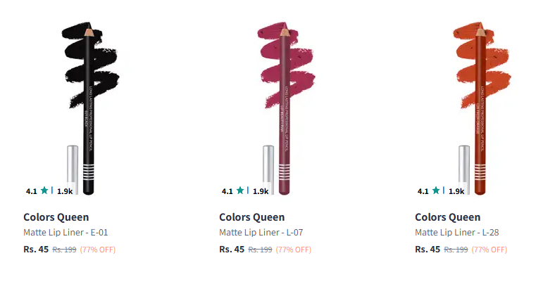 Grab a fantastic deal on Colors Queen Non-Transfer Long Lasting Matte Lip Liners at Myntra, now available with up to 77% off!