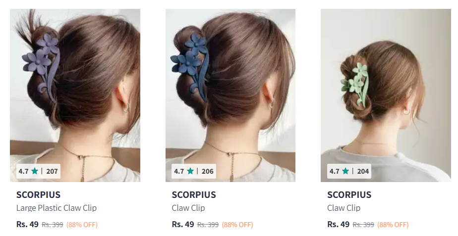 Discover fantastic savings on claw clips and other stylish hair accessories at Myntra! Enjoy discounts of up to 90% off, with prices starting from just ₹40.