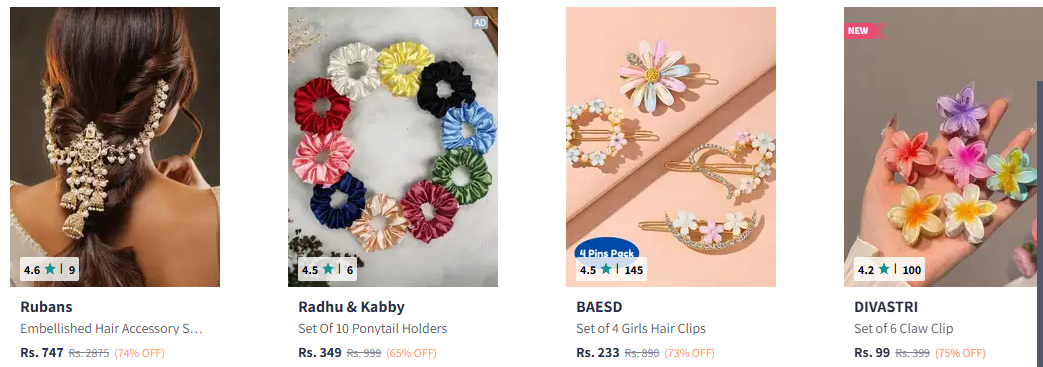 Refresh your collection with hair clips, bands, scrunchies, and more, with prices starting from just ₹199.