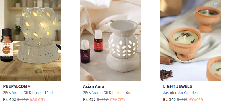 Enhance your living space with incredible savings on aroma oil diffusers, essential oils, and air fresheners. Myntra is offering upto 84% off on a wide selection of home fragrances.