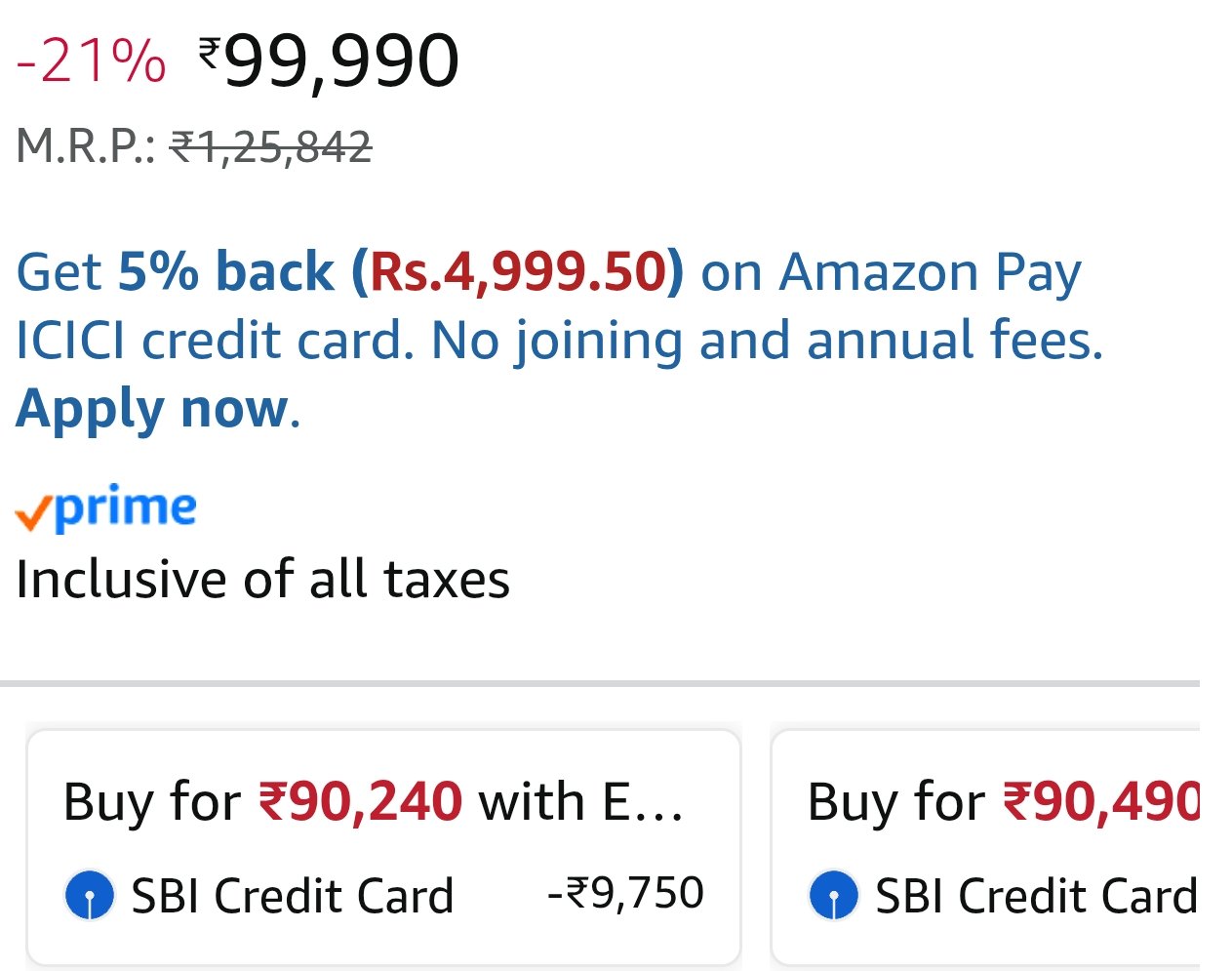 - Get an instant discount of ₹9,750 with SBI Credit Card No Cost EMI transactions.