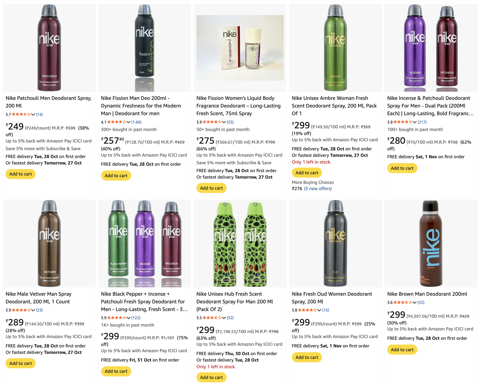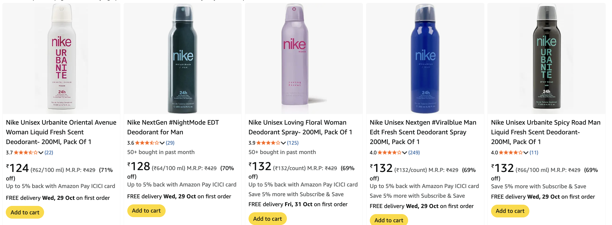 Discover fantastic savings on Nike Men’s Body Deodorants! Get up to 71% off on a wide range of popular fragrances, with prices starting from just ₹124 on Amazon India. Enhance your daily freshness with these long-lasting deodorants. Don’t miss this limited-time offer to stock up on your favorites.