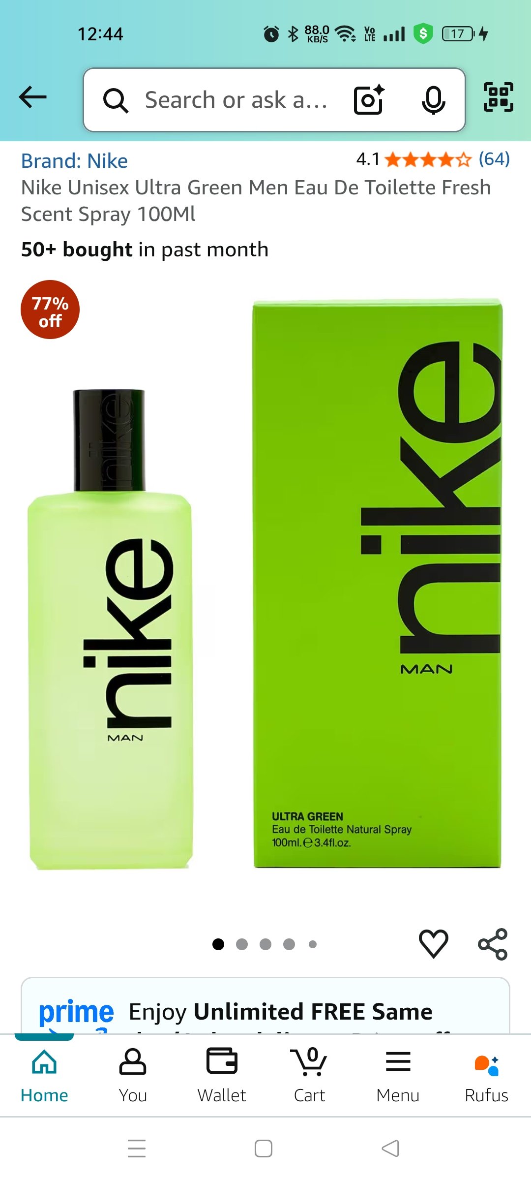 Discover the refreshing Nike Ultra Green Unisex Eau De Toilette (100ml), now available at an incredible 77% discount! This fresh scent spray is perfect for daily wear, offering a long-lasting fragrance suitable for both men and women. Originally priced at ₹1499, you can now grab it for just ₹340. Don't miss this limited-time offer on Amazon.