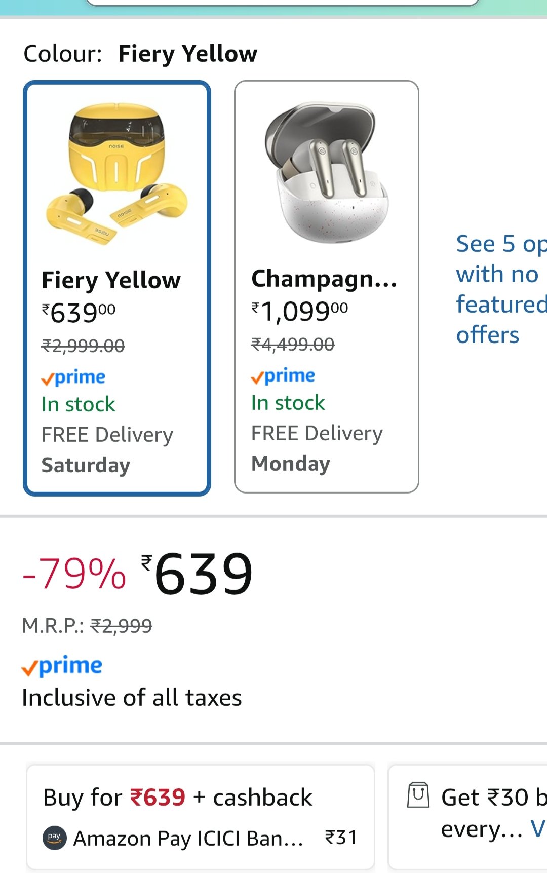 Experience immersive audio with the newly launched Noise Buds Trooper In-Ear True Wireless Earbuds in Fiery Yellow. Get these stylish TWS earbuds at an incredible 79% discount.