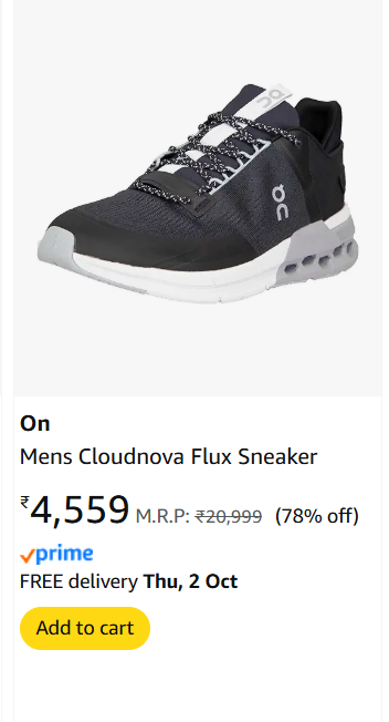 Originally priced at ₹20,999, you can now purchase these premium running shoes for just ₹4,559.