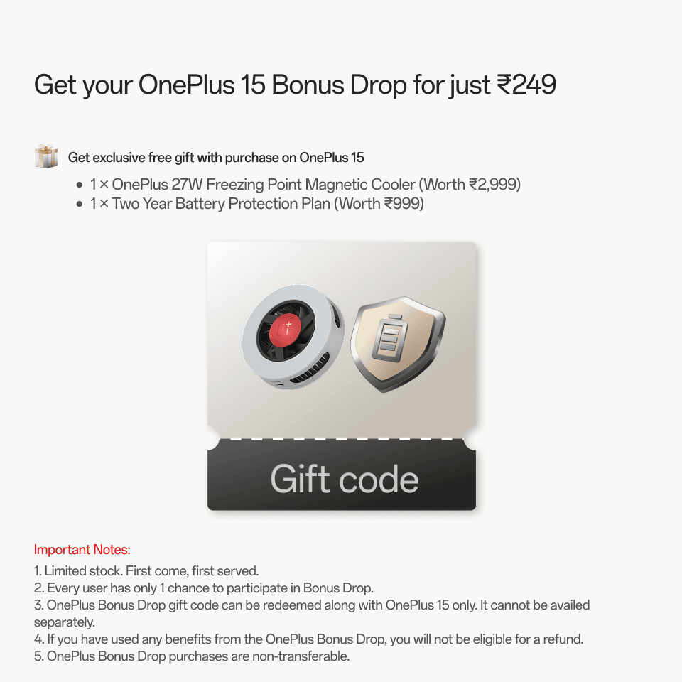 Don't miss the **OnePlus Bonus Drop**! Purchase this exclusive bundle for just ₹249 and receive accessories worth ₹3,998. This limited-time offer includes essential items to enhance your OnePlus experience.