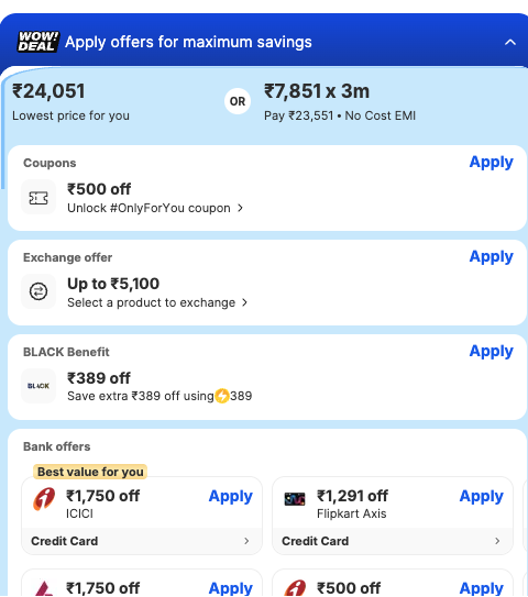 - Bank Offer: 5% cashback on Flipkart SBI Credit Card upto 294,000 per calendar quarter