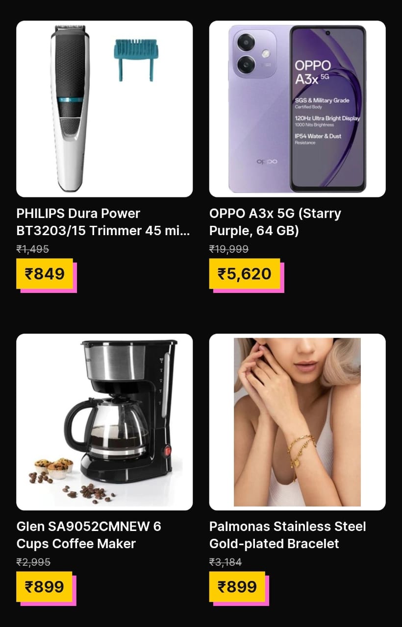 Grab the OPPO A3x 5G (4GB RAM, 64GB Storage) at an incredible price on Flipkart. Originally ₹19999, now available for just ₹4191, offering a massive 79% discount!