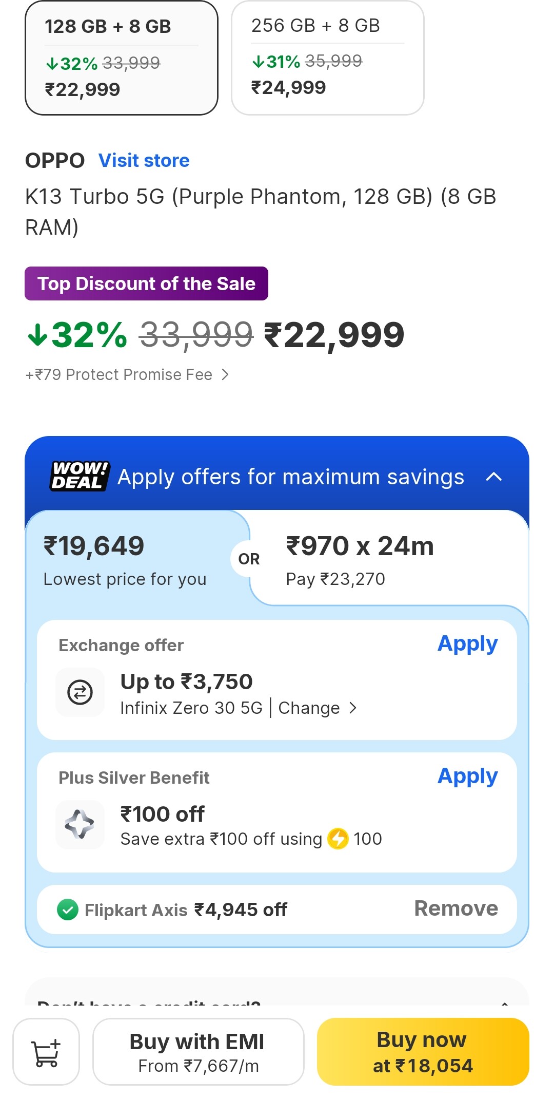 - 8GB + 128GB: ₹18,049*