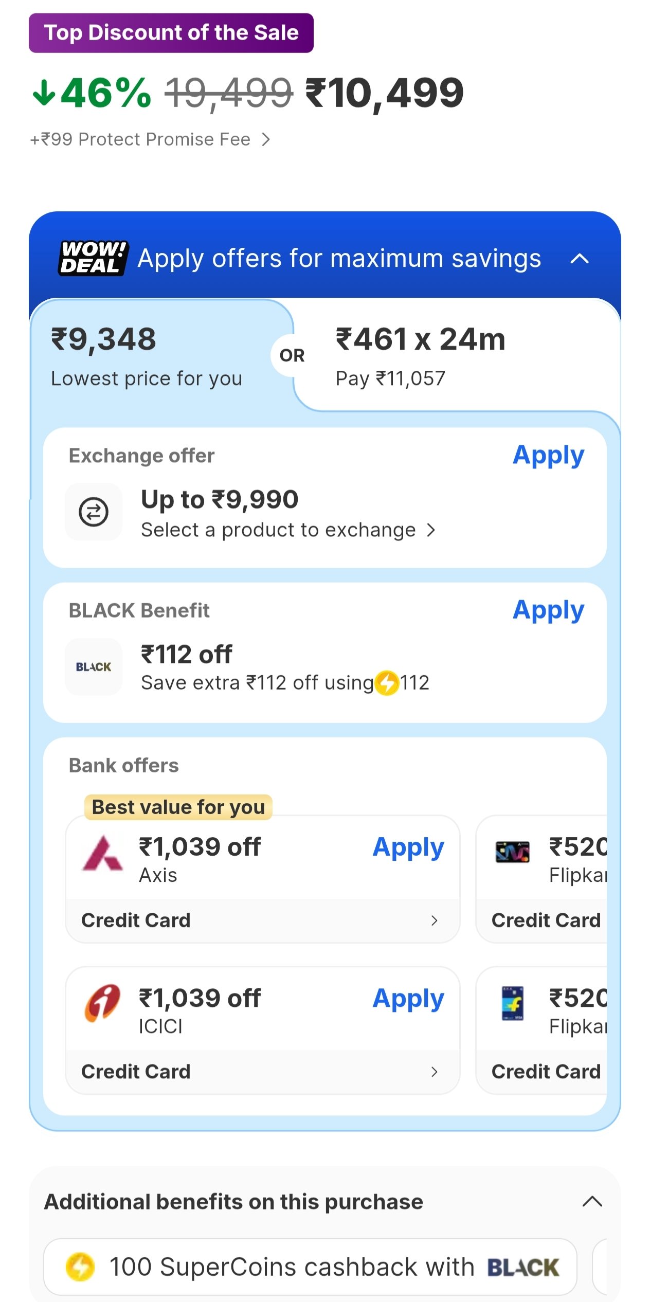 - Get an additional 10% off up to ₹1,250 on ICICI/Axis Bank Credit Card transactions, applicable on orders of ₹4990 and above.