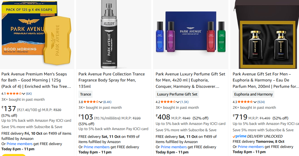 Grab amazing discounts on Park Avenue grooming essentials! Save up to 57% on a wide range of products including deodorants, shaving creams, and more. Prices start from just ₹103.