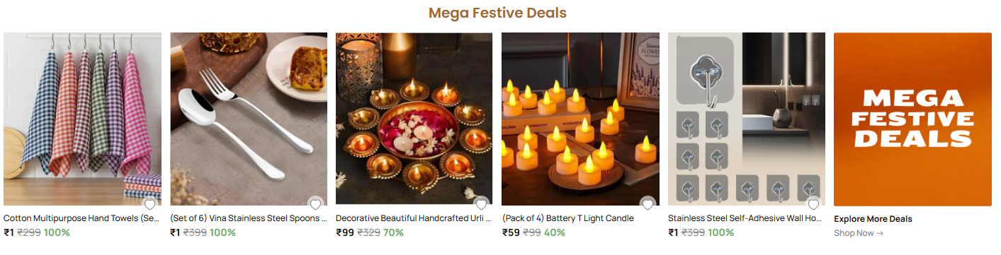 - Products at ₹99 (MRP ₹329, 70% Off)