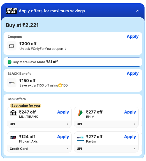- Partner Offer: Get 5% off up to ₹750 on furniture (user specific).