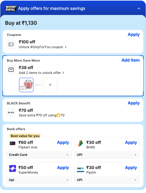 - Bank Offer: Get 5% cashback on Axis Bank Flipkart Debit Card.