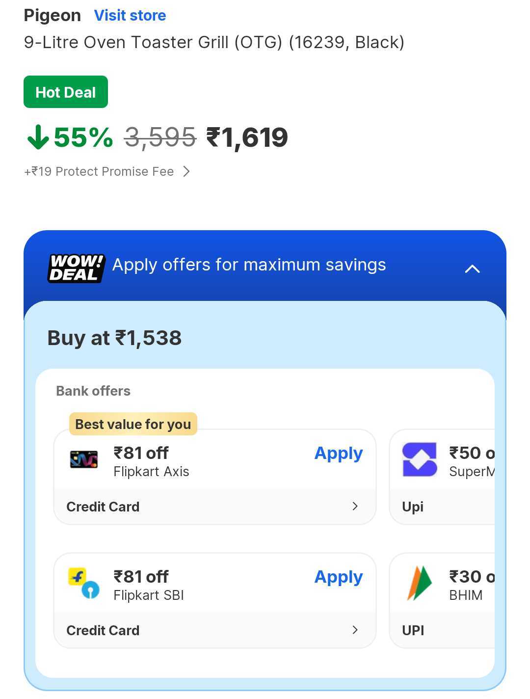 Grab the Pigeon 9-Litre Oven Toaster Grill (OTG) in Black at an amazing discount!