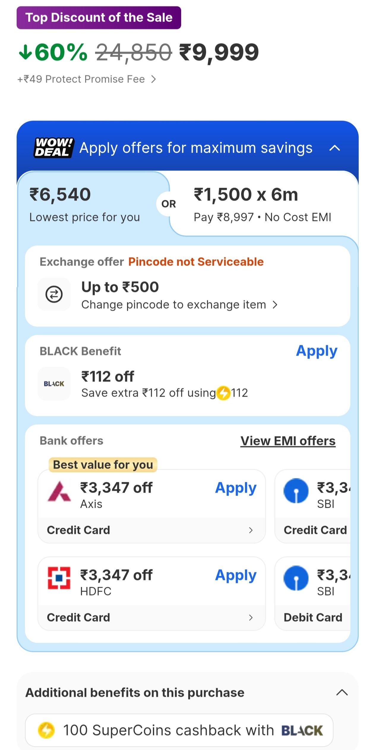 - Extra 10% Up to ₹1500 Off On HDFC/Axis/SBI/ICICI Bank credit card Full payment transactions.