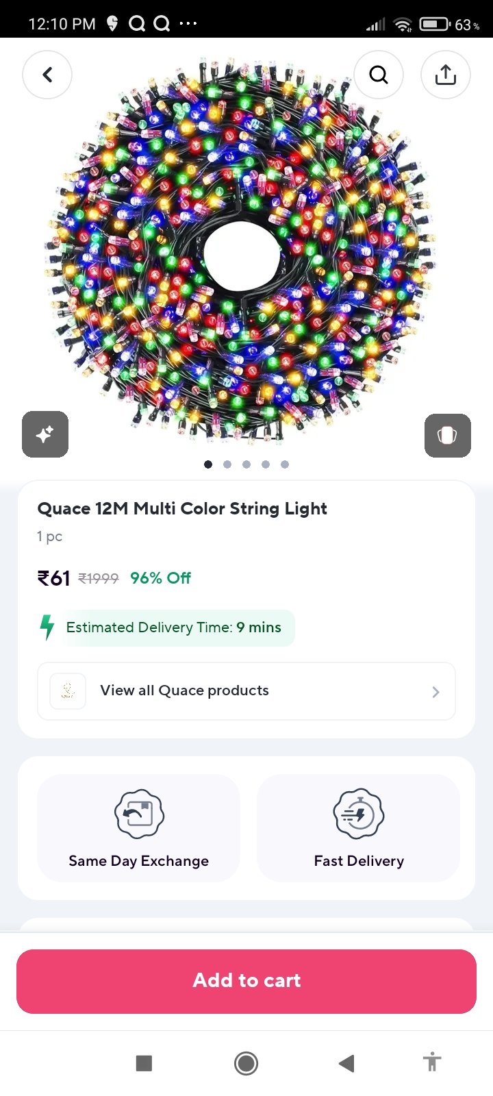 Get ready for Diwali with the stunning Quace 12M Multi-Color String Light, now available at an incredible price of only ₹61 on Zepto! Originally retailing for ₹1999, you save a massive 97%. These vibrant lights are perfect for illuminating your home, garden, or any festive space, adding a touch of brilliance to your celebrations. Don’t miss this limited-time offer to light up your Diwali affordably.