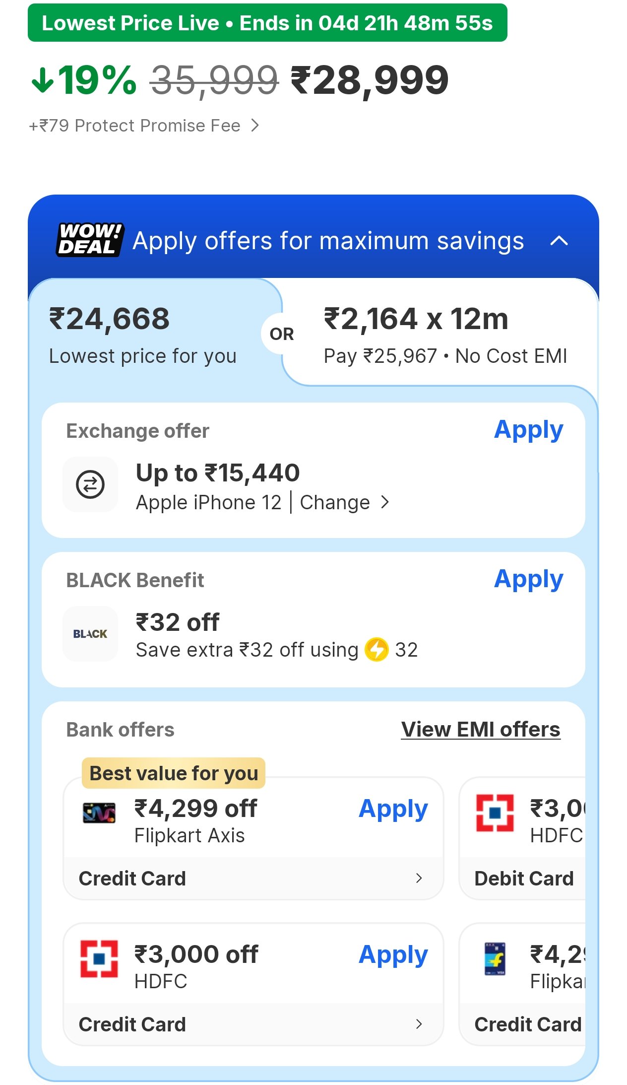 - Get an instant ₹3,000 discount when you purchase this product using eligible Credit Cards (Axis/HDFC/SBI/ICICI/Kotak/YES/Federal) for Non-EMI, Credit Card EMI, and Debit Card EMI transactions. Check the product page on Flipkart for full offer details and terms.