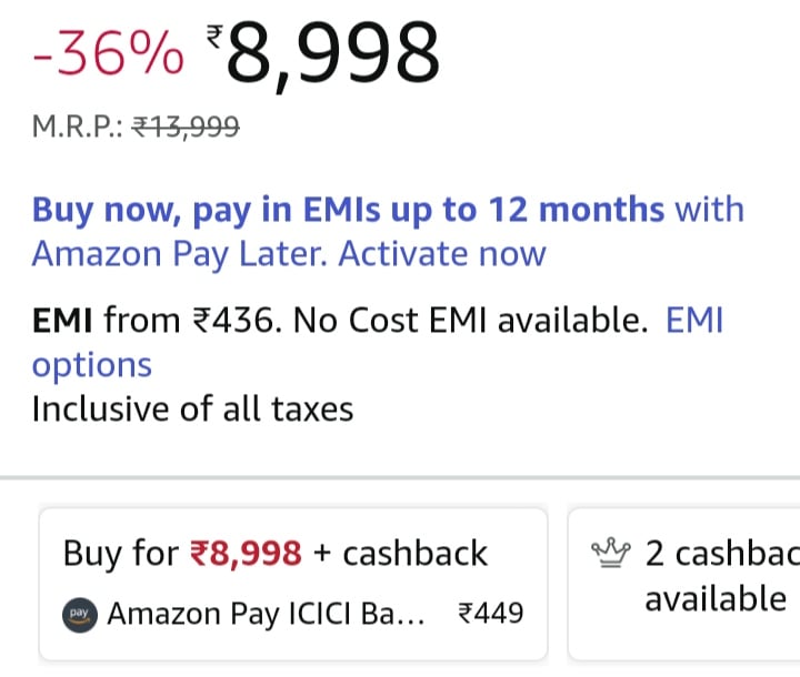 Current Offer Price: ₹8549 (Effective price with ICICI Amazon Credit Card)