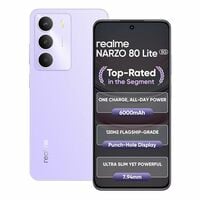 Grab the realme NARZO 80 Lite 5G (Crystal Purple, 6GB+128GB) for just ₹10,749, a significant 28% off its retail price of ₹14,999, available on Amazon India.