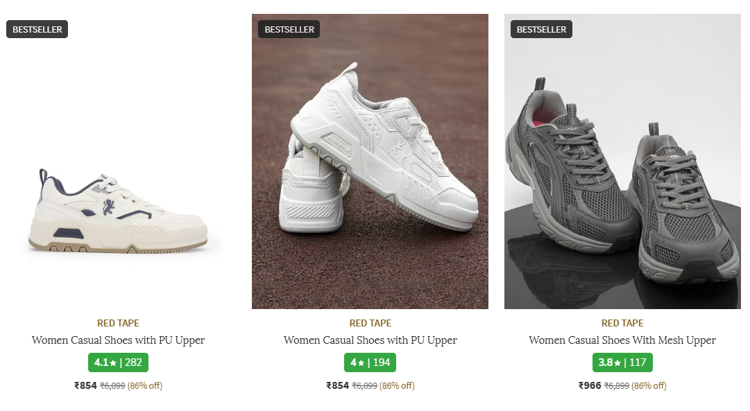 Grab incredible savings on Red Tape Women's Sneakers at Ajio! Enjoy discounts of up to 86% on a wide selection of stylish and comfortable footwear.
