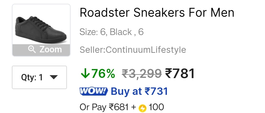 Grab a fantastic deal on Roadster Men's Sneakers at an incredible price of ₹681 (79% Off) on Flipkart! This offer is valid for Size 6 only.