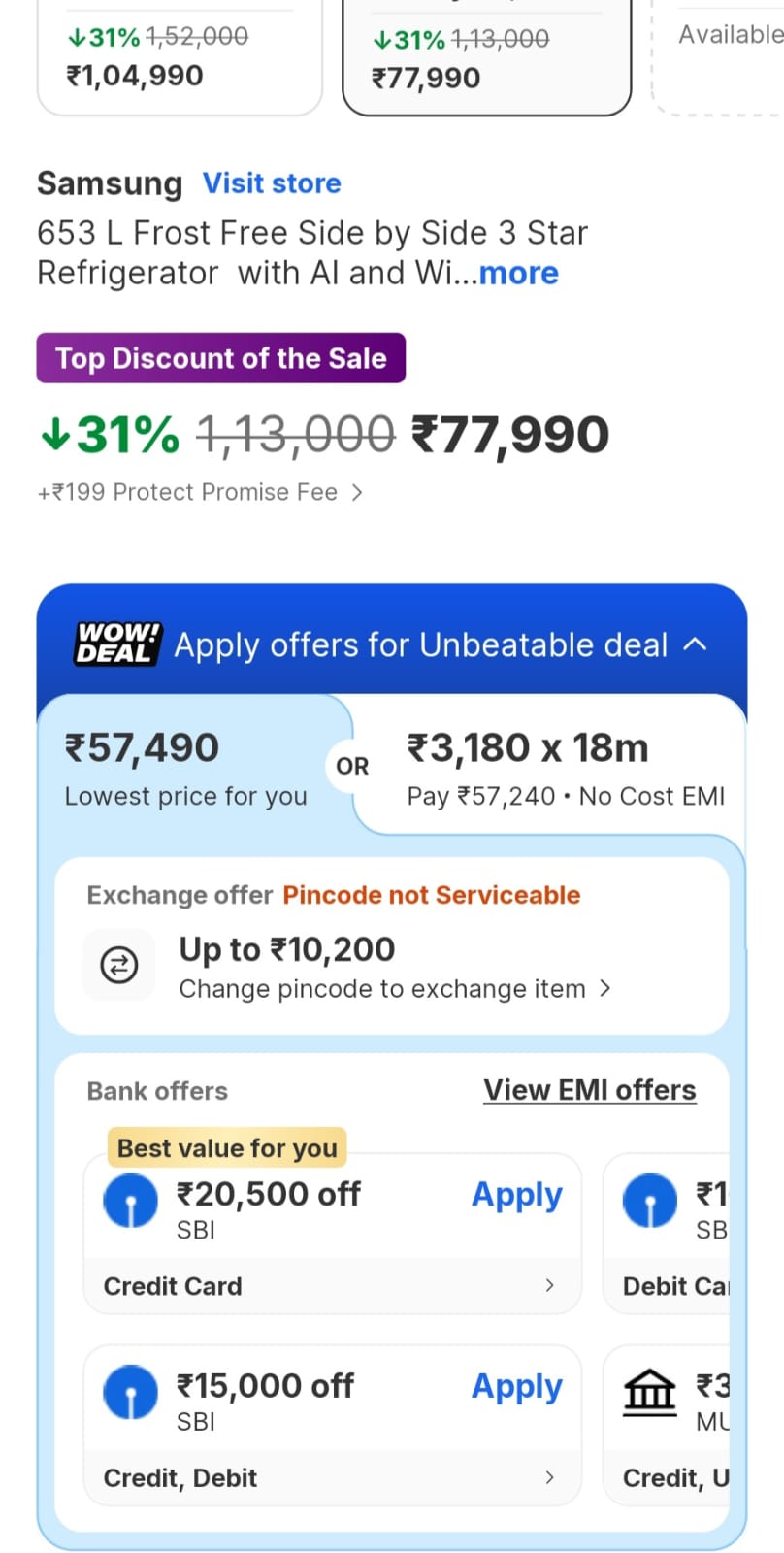 - Bank Offer: 10% off up to ₹1,500 on SBI Credit Card transactions of ₹4,990 and above (minimum ₹4,990 spend).