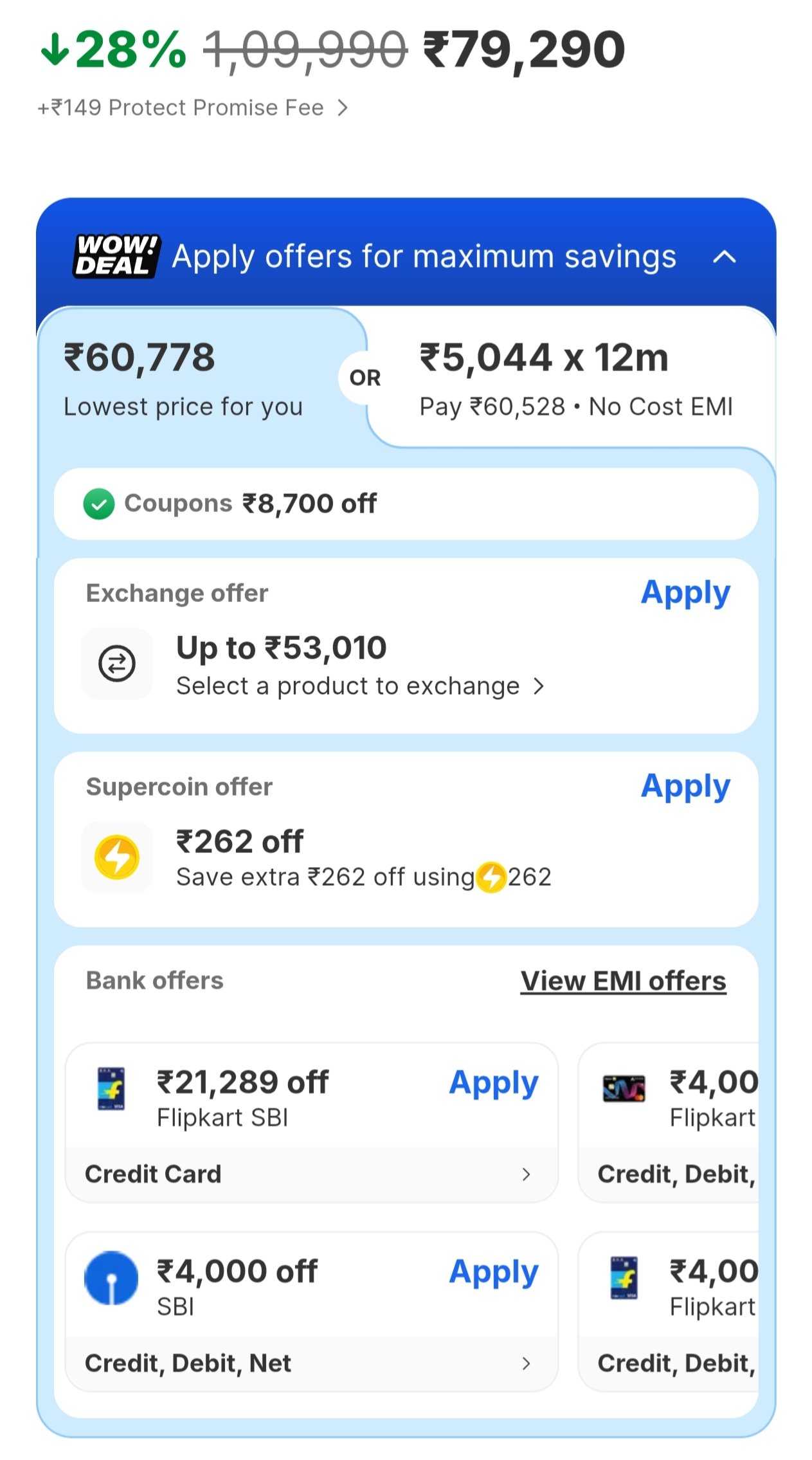 - Earn 5% cashback with Flipkart SBI Credit Card Non-EMI transactions.