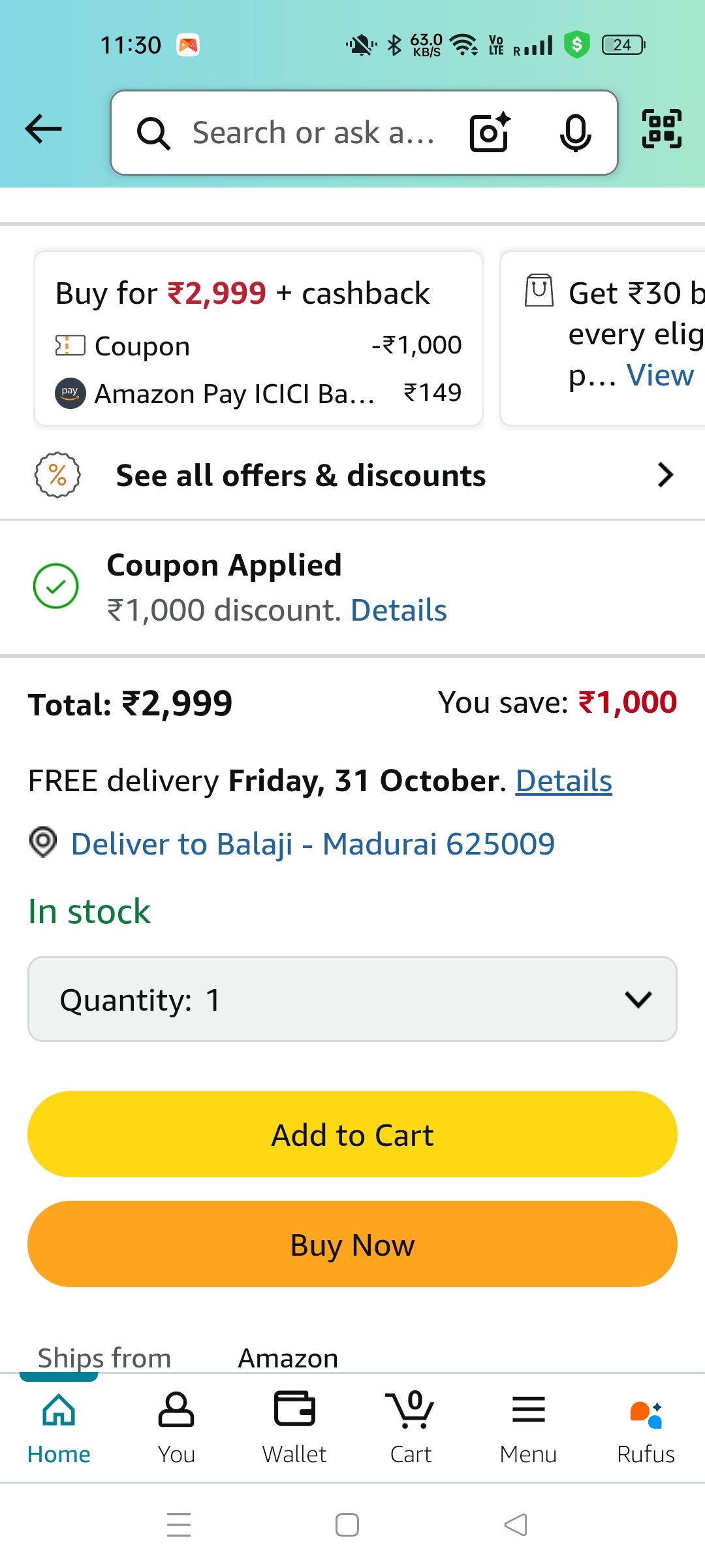 - Look for and apply the ₹1000 coupon available on the product page to get an additional discount.
