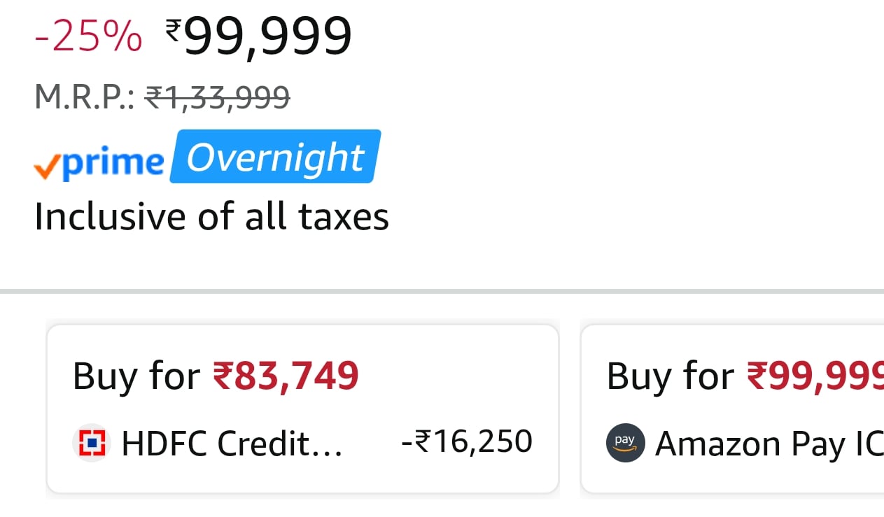 - HDFC Bank Credit Card (Non-EMI): ₹16,250 instant discount