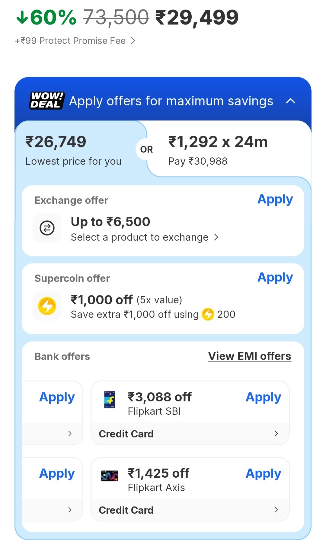 - Extra ₹3088 off with Flipkart SBI Credit Card.