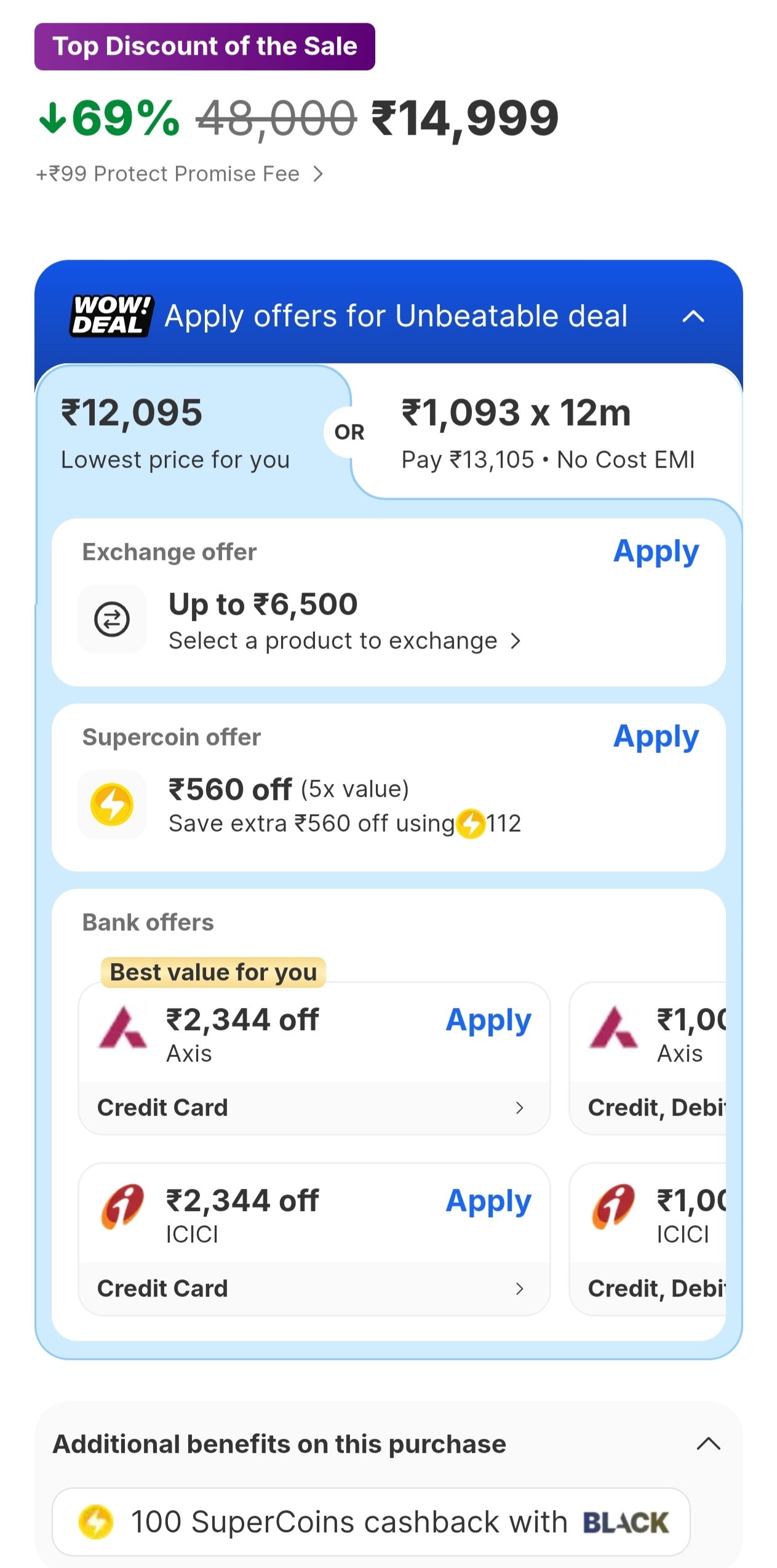 - Additional ₹1000 Off on Select Bank Cards (Axis/ICICI)