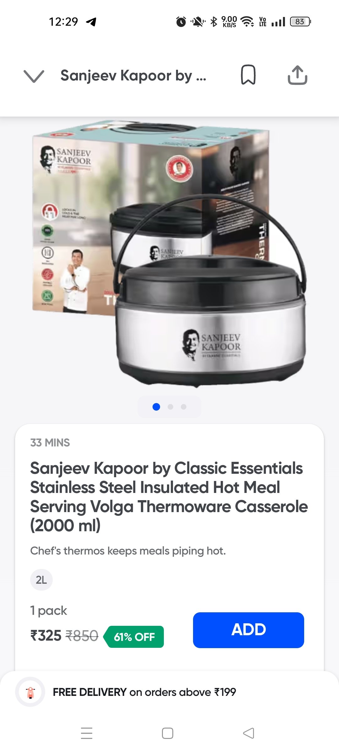 Keep your meals perfectly warm with the Sanjeev Kapoor by Classic Essentials Stainless Steel Insulated Volga Thermoware Casserole (2000 ml). This essential kitchen item is currently available at a significant 62% discount.