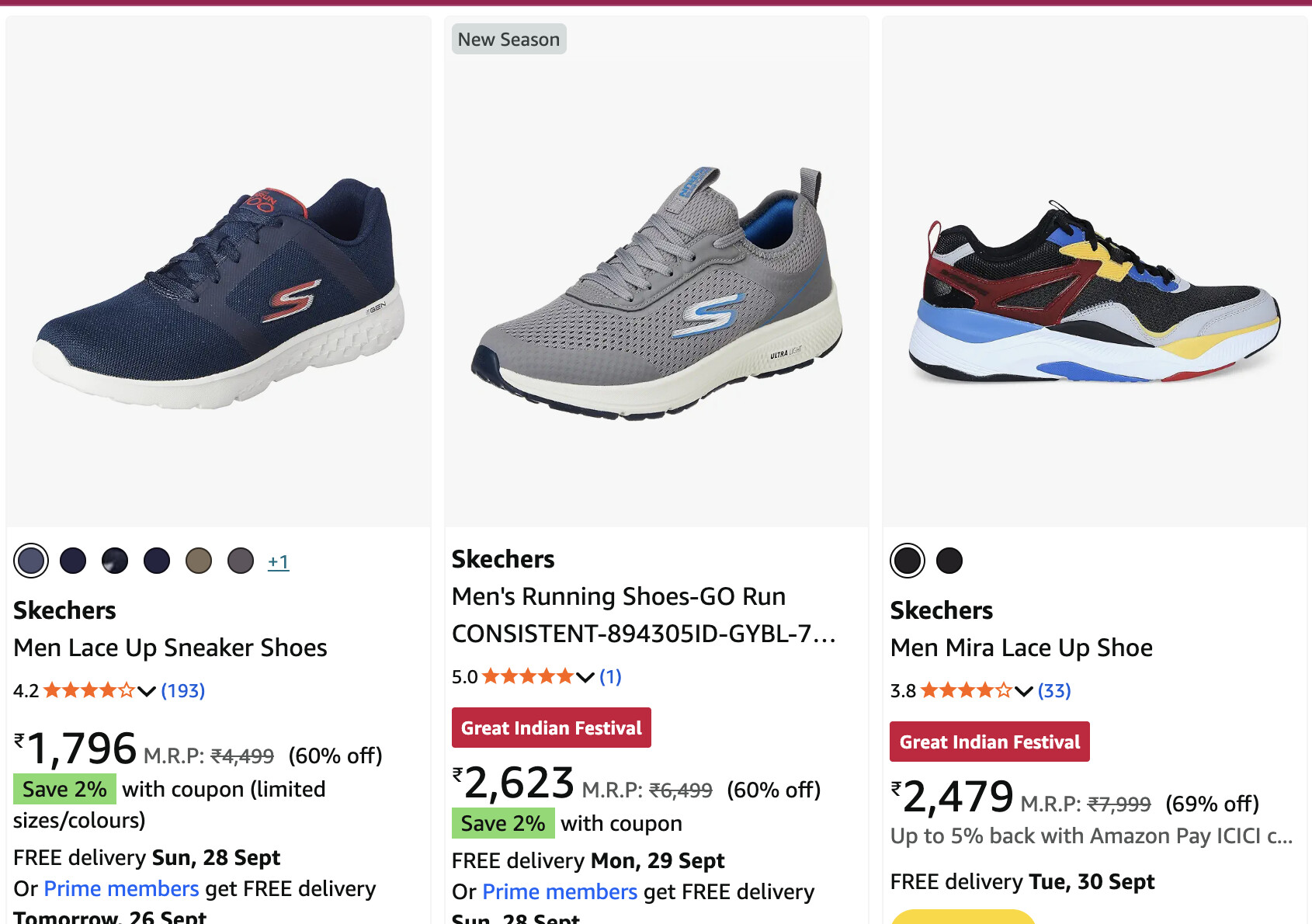 Discover amazing deals on Skechers Men's Shoes with discounts of 60% or more on Amazon India! Elevate your style and comfort with a wide range of Skechers footwear, including athletic shoes, casual sneakers, and more. Don't miss out on these limited-time offers to grab your favorite pairs at significantly reduced prices.