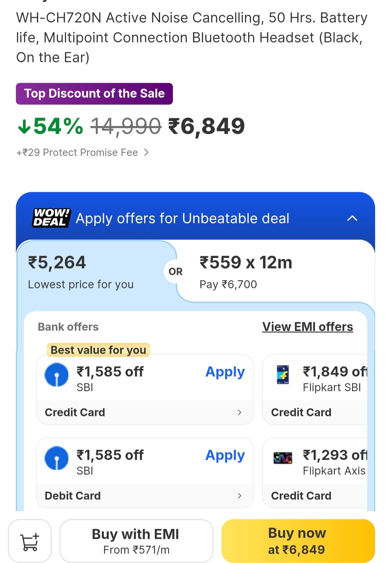 - Starting from ₹5,000 using Flipkart Co-Branded SBI Credit Cards.
