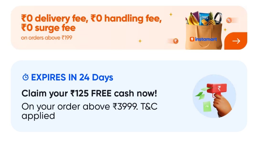 Enjoy incredible savings on your daily essentials with Swiggy Instamart! Get Zero Delivery Fees and Zero Handling Charges on all your orders totaling ₹199 or more. Stock up on groceries, fresh produce, and household items without extra costs.