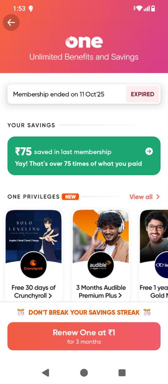 Grab a Swiggy One Membership for just ₹1! This exclusive offer is likely account-specific. Download the Swiggy app to check if you're eligible.